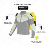 This jacket puts rider safety first with state-of-the-art protection. Its innovative armor system provides superior impact defence without compromising on flexibility or comfort, ensuring a smooth, protected ride every time.